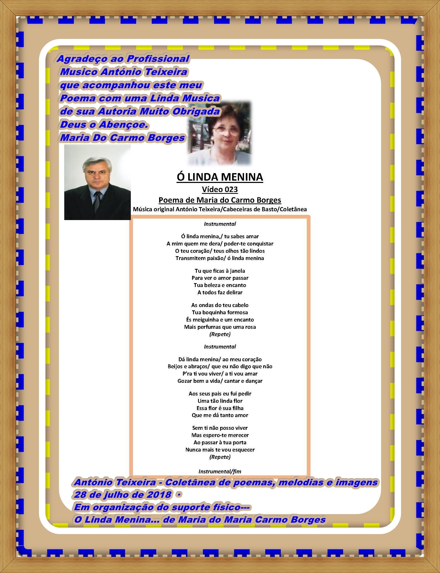 Deus nos Ama Amem Beijinho da vossa Amiga Maria Do Carmo Borges a Borgezinha que para Deus e Nossa Senhora canta e para todo o meu proximo para todo o Mundo Deus tenha misericõrdia do seu Povo que tanto está a sofrer com as guerras meu Deus não nos abandones Amem.